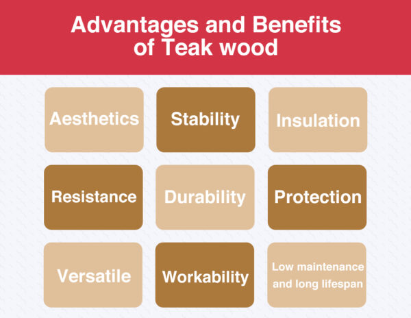 One of the best attributes of teak is its density. This perk makes for excellent insulation that efficiently supports the temperature inside. Installing high-quality teak furniture will prevent heat during the summer.