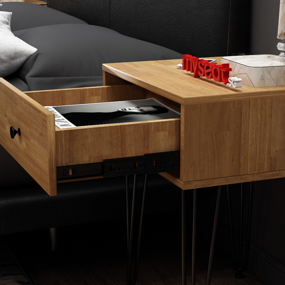 Introducing the AADI Solid Wood Bedside Table, the perfect addition to any bedroom. This stunning table is made from solid wood, ensuring durability and longevity. It features a drawer for convenient storage, and options to choose with wireless charger. The sleek and modern design of this table will elevate the look of any bedroom, while the functional design provides the perfect place to rest a lamp, alarm clock, or other bedside essentials.