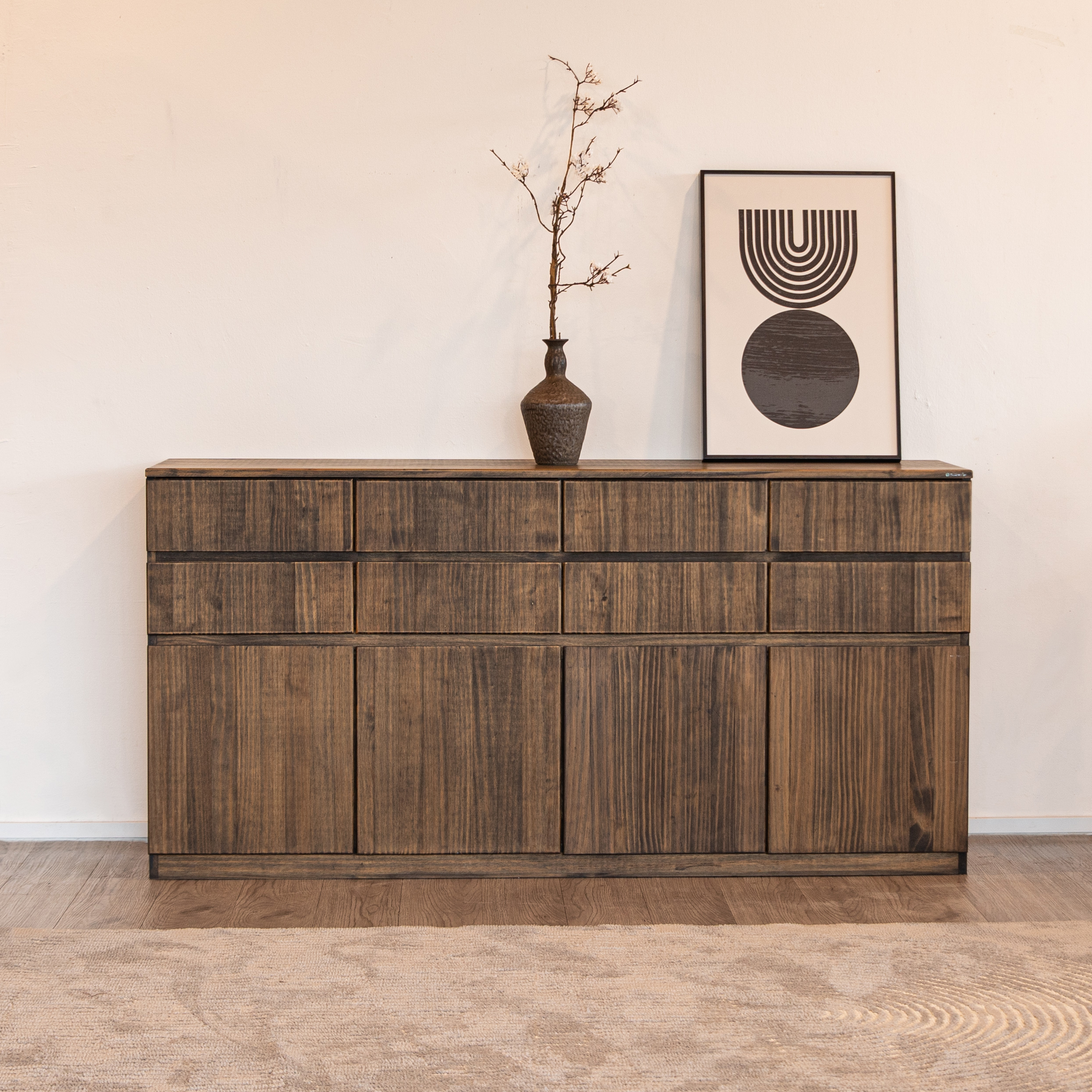 The natural grain of the solid wood with its knots, nicks, and visual imperfections are celebrated in this organically perfect piece of furniture. Colour varying tones make a statement that allows this piece to blend in well with lots of other materials and settings for that chic, organic feel at home.