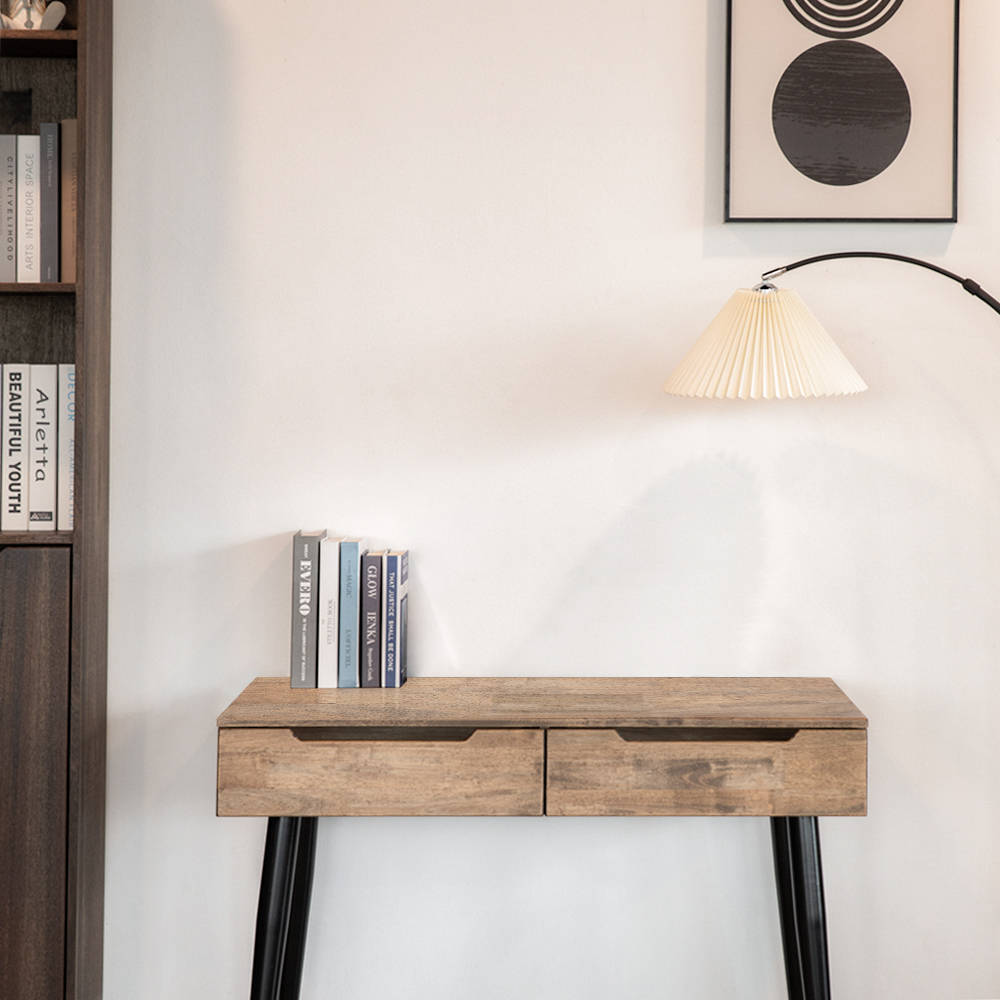 This beautiful piece of furniture is made from high quality solid wood, and features two drawers and a cable management compartment