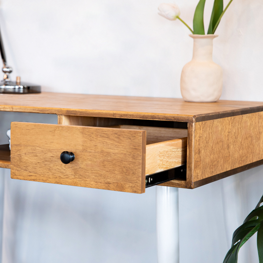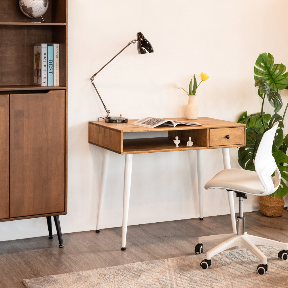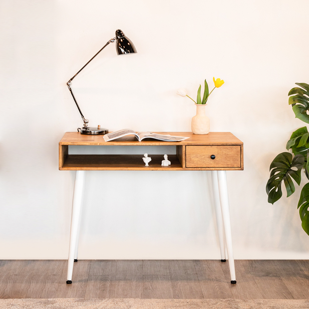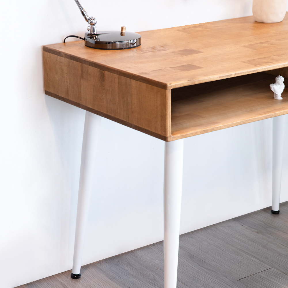 Whether you’re looking for a study desk for your home office or a simple writing table for your bedroom, the CHRONOS Solid Wood Study Table is the perfect choice. Made from high-quality solid wood, this study desk is built to last. The powder-coated leg surface ensures a durable and scratch-resistant finish. The open compartment and small drawer provide ample storage space for your books, papers and other materials. With its simple yet stylish design, the CHRONOS Solid Wood Study Table is sure to become a favorite piece of furniture in your home.