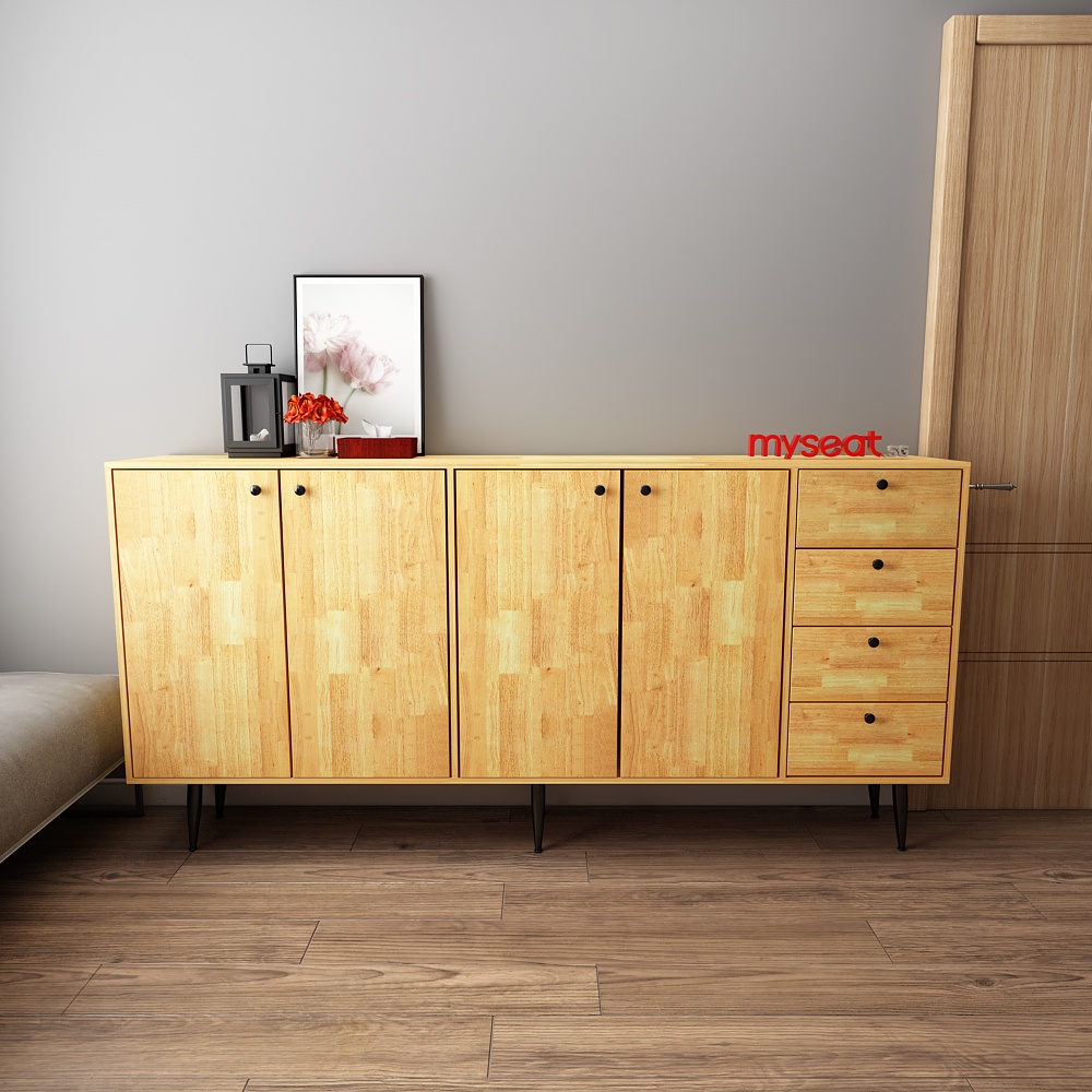 The natural grain of the solid wood with its knots, nicks, and visual imperfections are celebrated in this organically perfect piece of furniture. Colour varying tones make a statement that allows this piece to blend in well with lots of other materials and settings for that chic, organic feel at home.