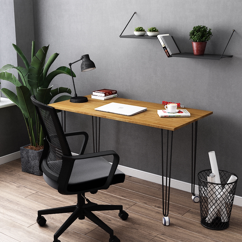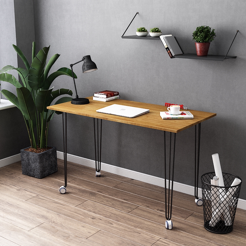 The HALLEY Solid Wood Table is the perfect desk for students or professionals who need a movable, lockable desk. The wheels make it easy to move around, and the solid wood tabletop is durable and looks great. The powder coated hairpin legs are stylish and add to the modern look of the desk.