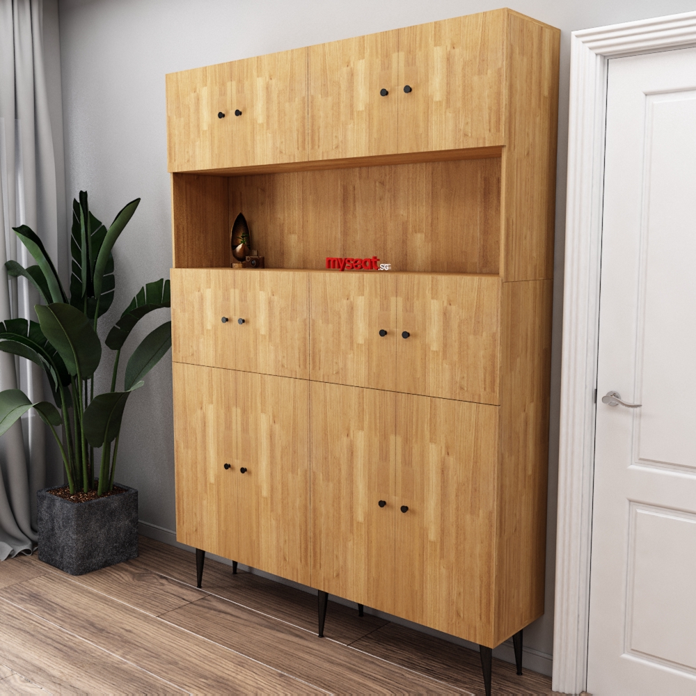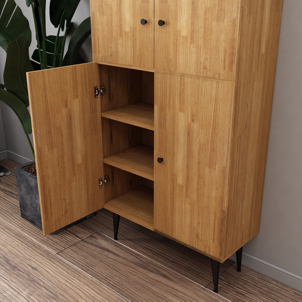 The HANNA Solid Wood Shoe Cabinet is the perfect storage solution for your home. Crafted from solid wood, this tall cabinet features ample storage with an open shelf for display. The HANNA Solid Wood Shoe Cabinet is the perfect way to organize your space and keep your shoes organized and out of the way. With its sleek design and rich finish, this shoe cabinet will complement any décor.