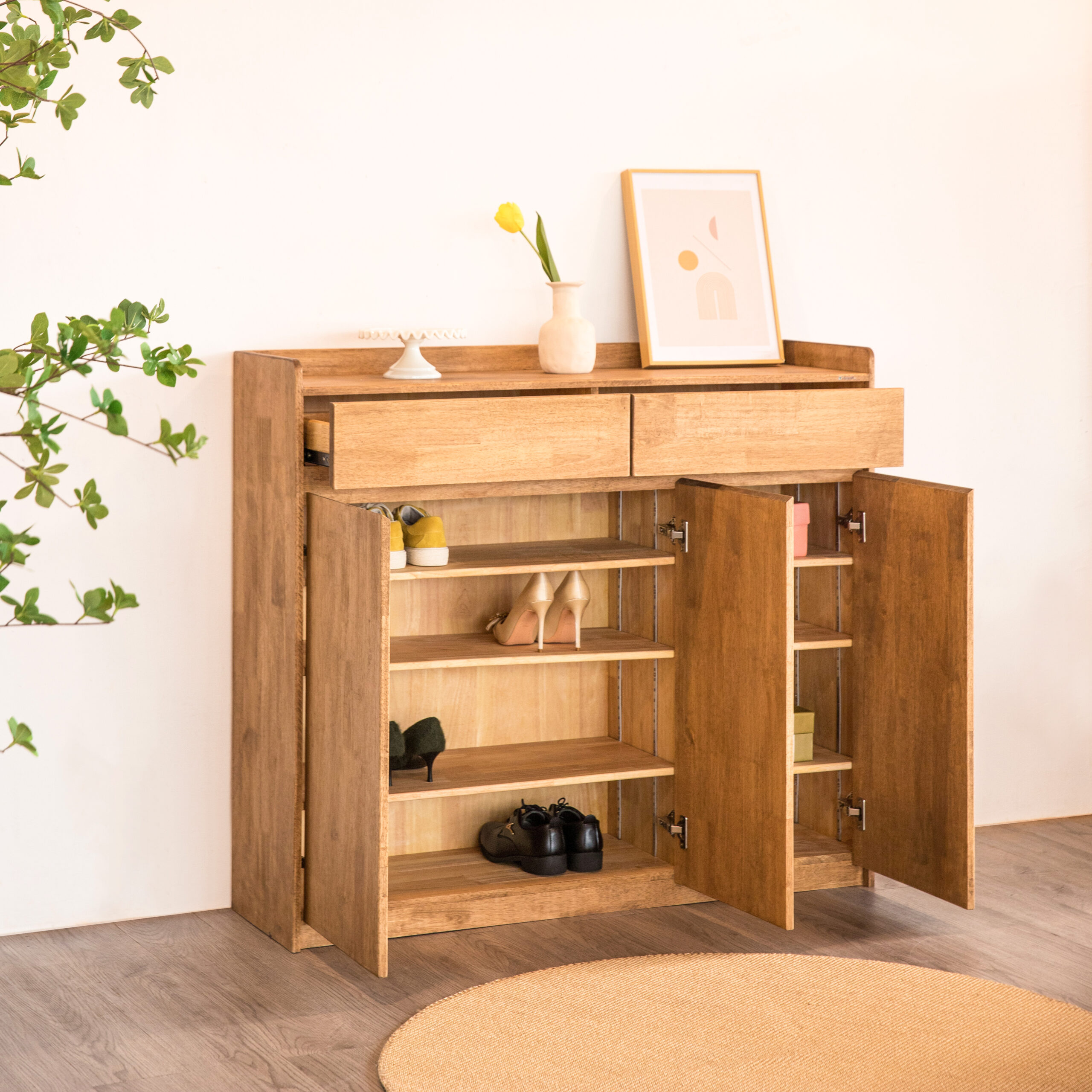 The HANSON Solid Wood Shoe Cabinet is the perfect storage solution for your entryway or mudroom. This cabinet is made from solid wood, so it’s built to last. The drawer storage is perfect for small items like keys or gloves, and the adjustable shelving means you can customise the storage to fit your needs. With its classic style and functional design, this shoe cabinet will help keep your home organised and looking great.