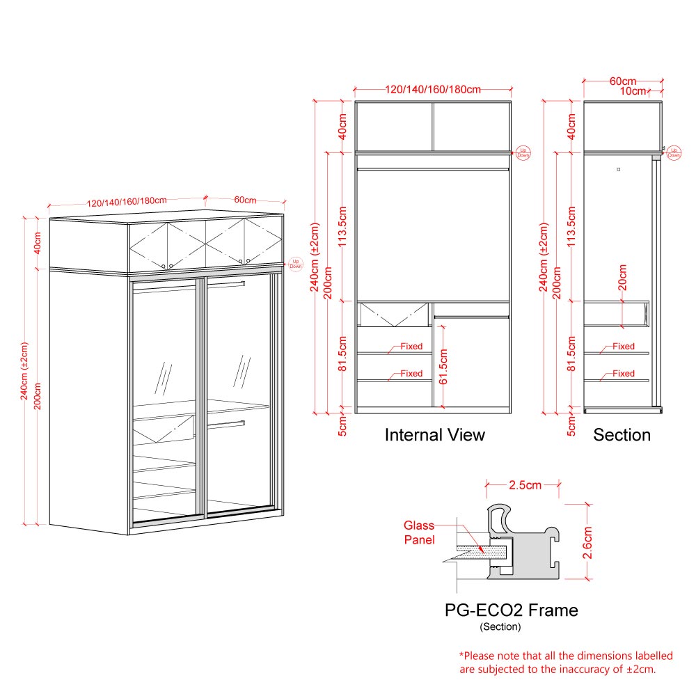 This closet features a glass door which makes it easy to find your belongings, and the flexible design means you can fully utilise the space inside.