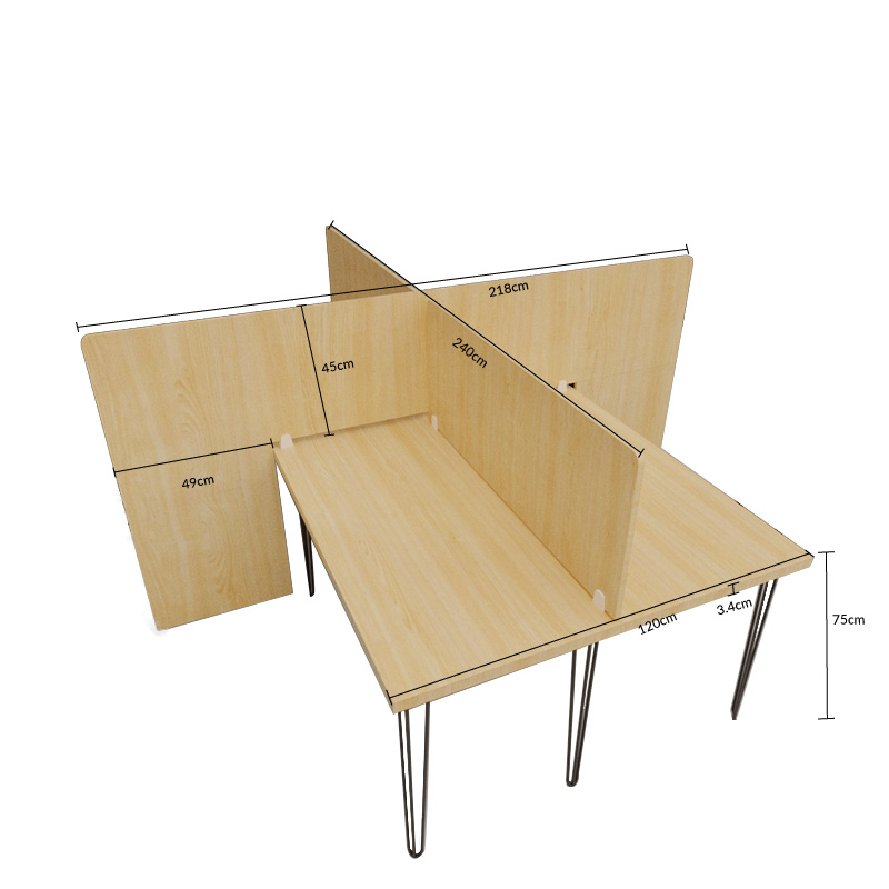 LAGAN 4 seater Workstation is the perfect choice for those who appreciate high-quality craftsmanship and contemporary design. The workstation features a solid wood tabletop, hairpin legs with adjustable paddings, and a divider for each seater. The workstation is also easy to assemble and disassemble, making it the perfect choice for both home and office use.