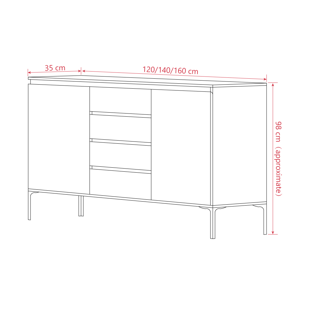 Dimension: L120/140/160 x D35 x H98 cm (approximately)