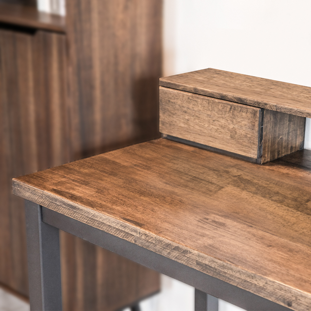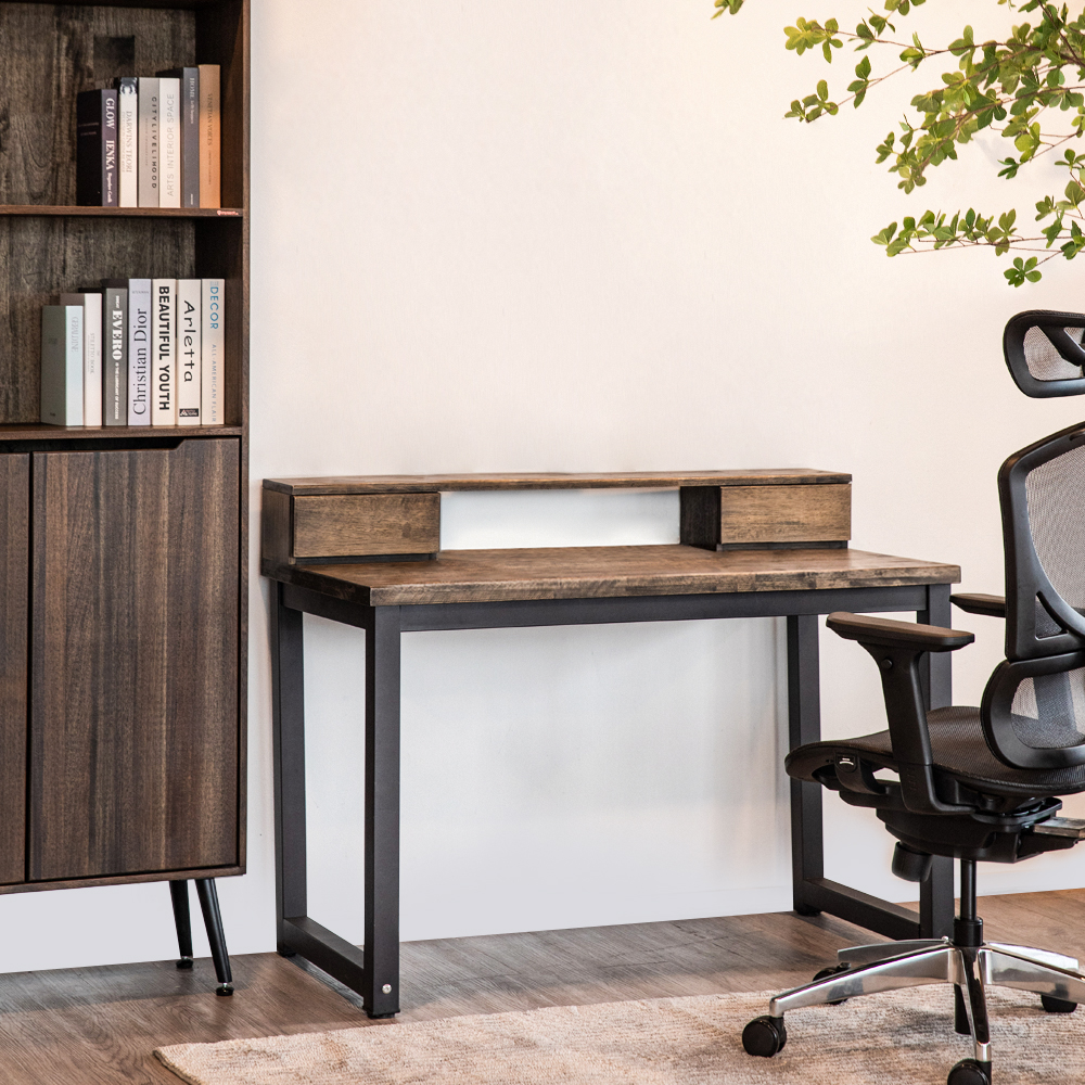 When you need a study table that is both stylish and functional, the MAVERICK Solid Wood Study Table is the perfect choice. The solid wood tabletop provides a sturdy surface for studying, writing, or working on your laptop, while the metal leg frame ensures durability. The monitor stand helps to keep your screen at eye level, preventing neck strain. With its simple yet chic design, the MAVERICK Study Table will complement any décor.