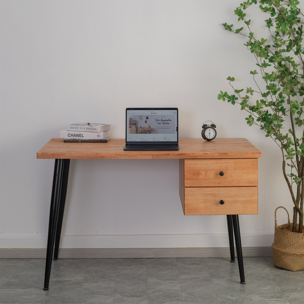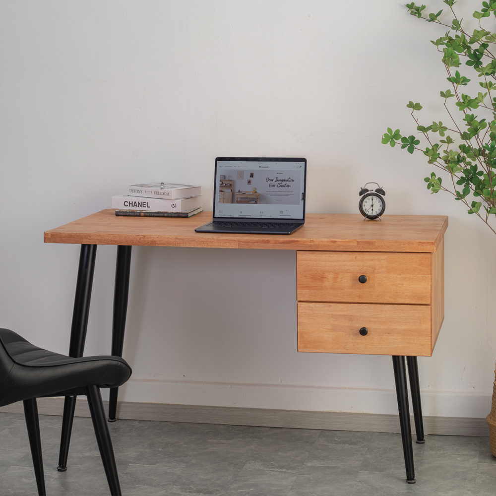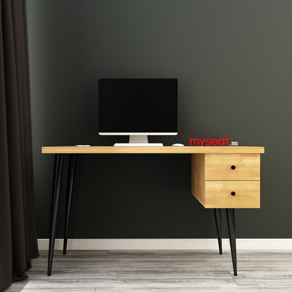 This study table is made of solid wood, ensuring that it will last for years. It also has a powder coated leg surface for a chic and modern look. Plus, it comes with drawers for storage function, so you can keep your books, documents, and other materials organised.