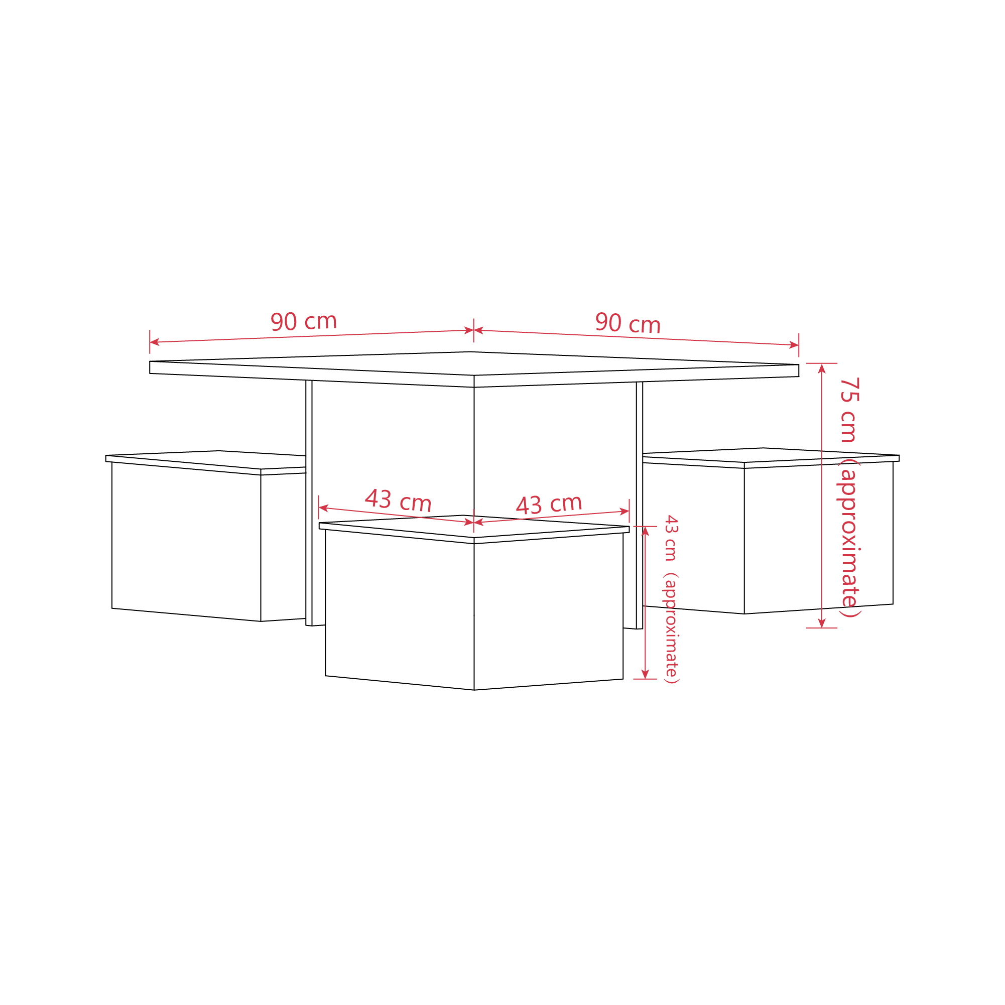 The NELL Solid Wood Dining Table Set is the perfect addition to any home. This dining set not only provides a place to eat, but also has a built-in storage solution that is perfect for small spaces. The sleek design and clean lines of this dining set will look great in any room, while the sturdy construction and durable materials make it a great investment for any home. This dining set includes a table and four chairs, all made from solid wood with a natural finish. The table has a lower shelf that is perfect for storing extra dishes or linens, and the chairs have comfortable seat cushions that are upholstered in a classic black fabric. This dining set is the perfect solution for any home that is looking for.