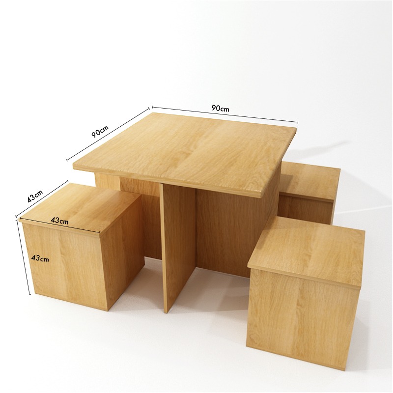 The NELL Solid Wood Dining Table Set is the perfect addition to any home. This dining set not only provides a place to eat, but also has a built-in storage solution that is perfect for small spaces. The sleek design and clean lines of this dining set will look great in any room, while the sturdy construction and durable materials make it a great investment for any home. This dining set includes a table and four chairs, all made from solid wood with a natural finish. The table has a lower shelf that is perfect for storing extra dishes or linens, and the chairs have comfortable seat cushions that are upholstered in a classic black fabric. This dining set is the perfect solution for any home that is looking for.