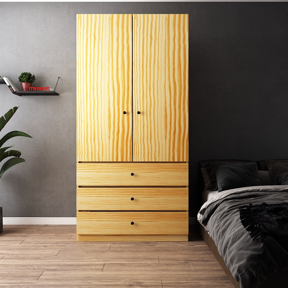 Delight in the straightforward elegance of the ONI Solid Wood Closet. This storage piece is sturdily crafted of solid wood for lasting use and comes in your choice of warm wood tones. It features a combination of open doors and drawers for versatile storage, perfect for organizing your clothing, linens, and more. Ample storage space ensures that everything has a place, while the clean lines and simple silhouette lend a touch of understated sophistication to your bedroom or dressing area. Fill your home with quality pieces that reflect your personal style with the ONI Solid Wood Closet.