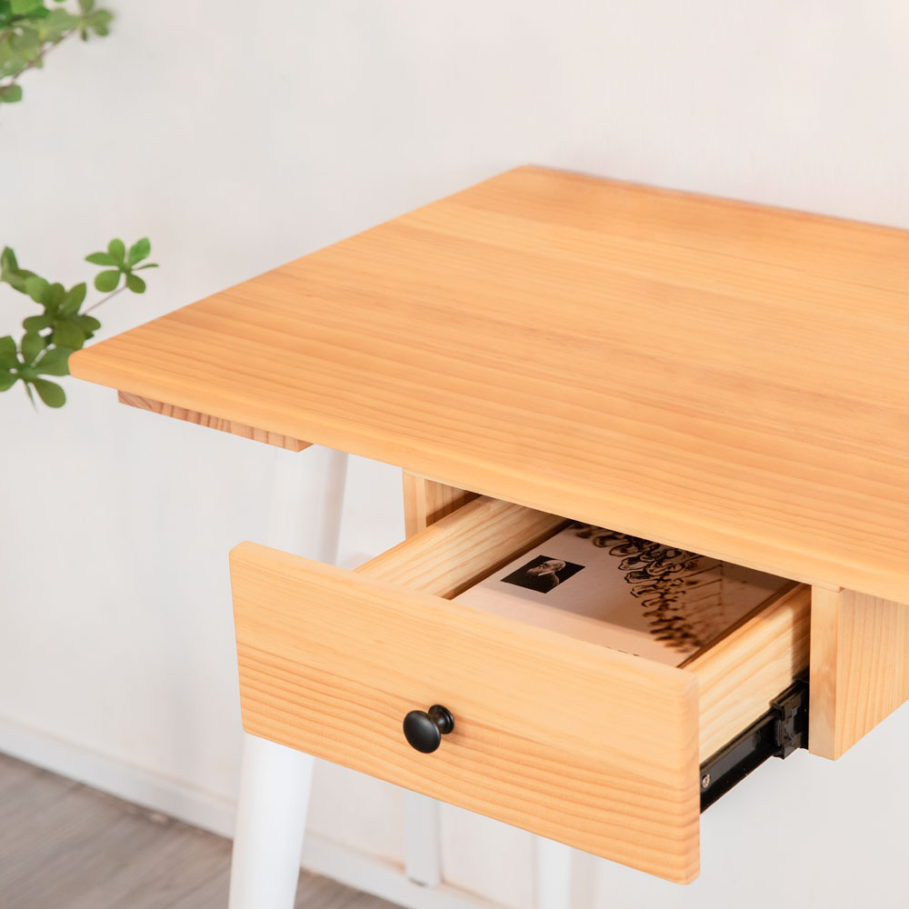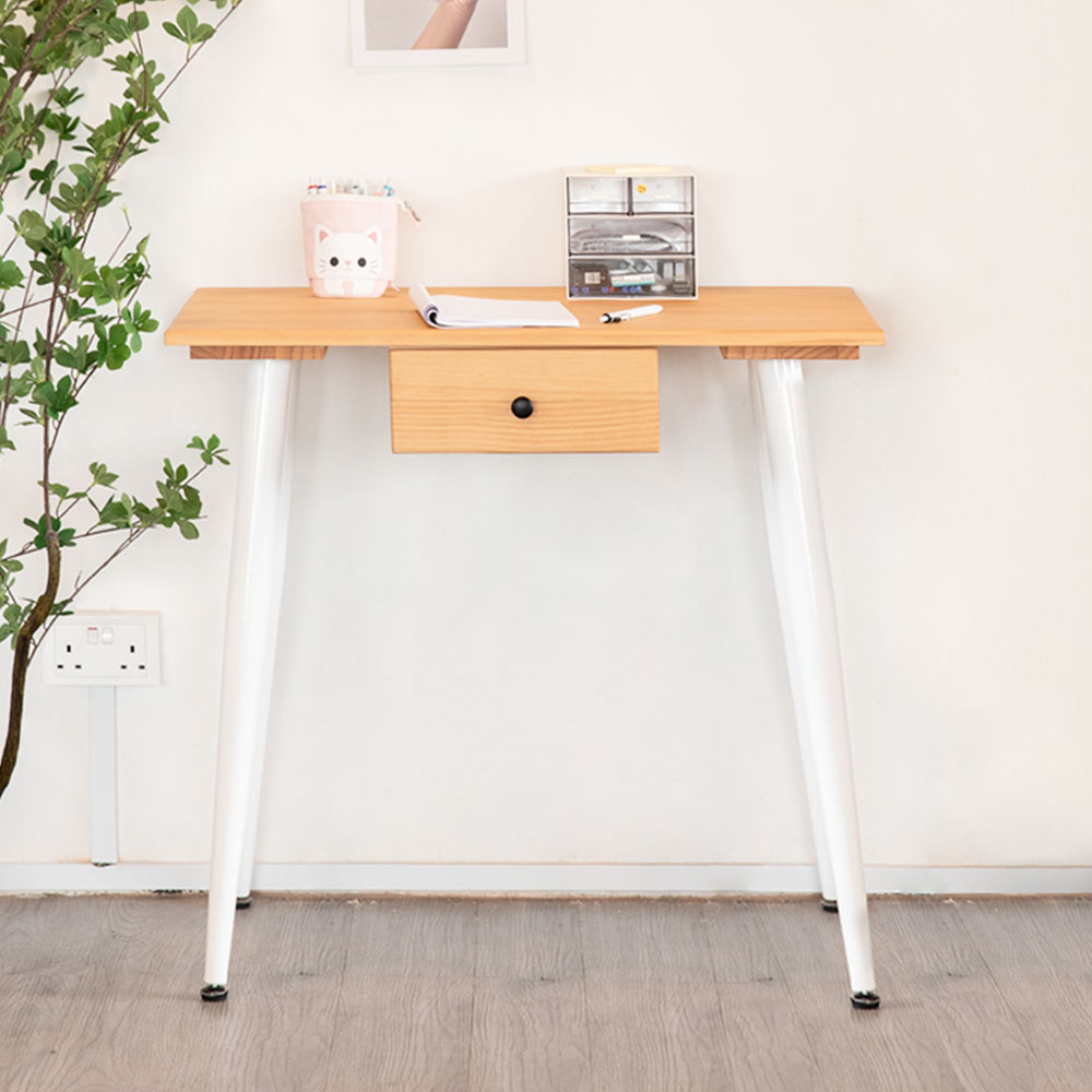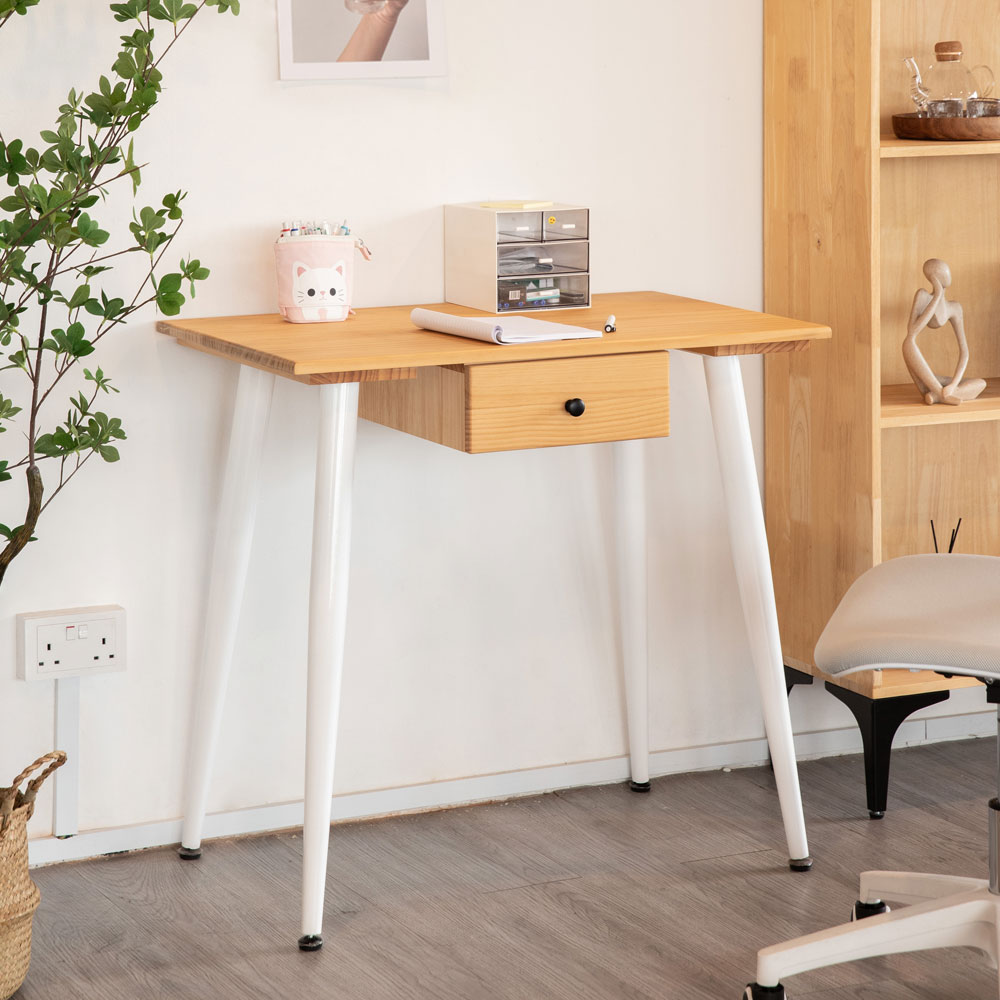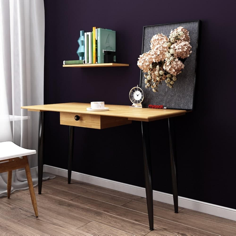 This is the perfect study table for your home office or bedroom. The RADIO Solid Wood Study Table has a beautiful solid wood tabletop with a powder coated leg surface. It also has a small drawer for storage function. This study table is perfect for any room in your home.