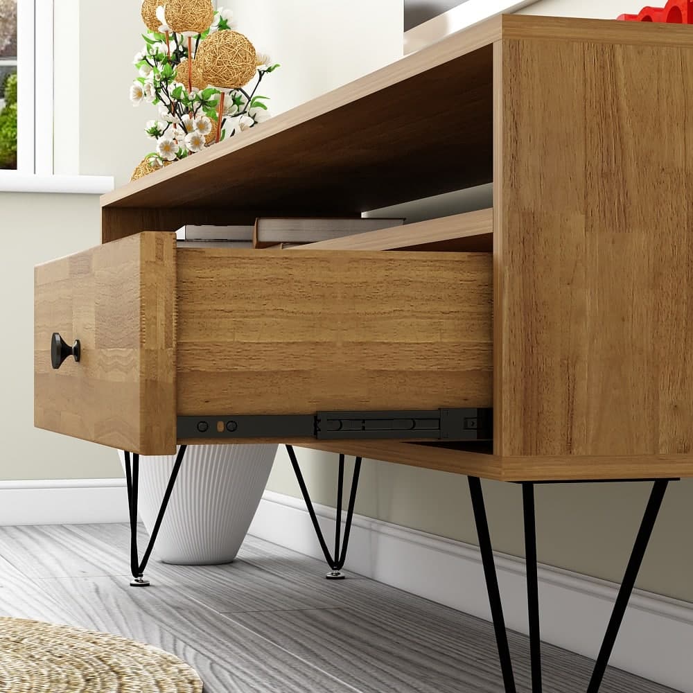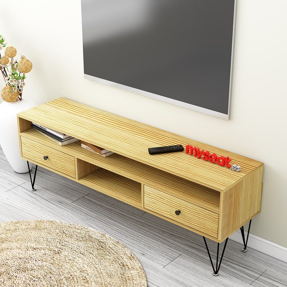 Designed with a light wooden panel with natural wood grains, our SHANT TV Console is the ideal workstation.
