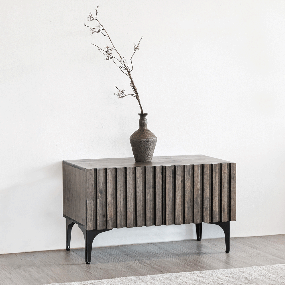 The natural grain of the solid wood with its knots, nicks, and visual imperfections are celebrated in this organically perfect piece of furniture. Colour varying tones make a statement that allows this piece to blend in well with lots of other materials and settings for that chic, organic feel at home.